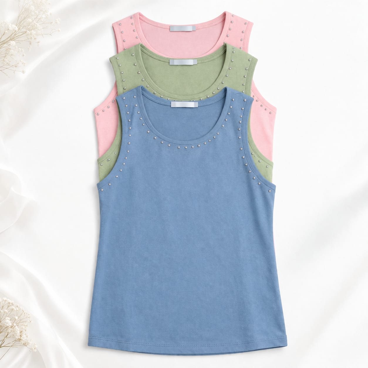 ✨ Regata com Tachas – Elegância no Básico